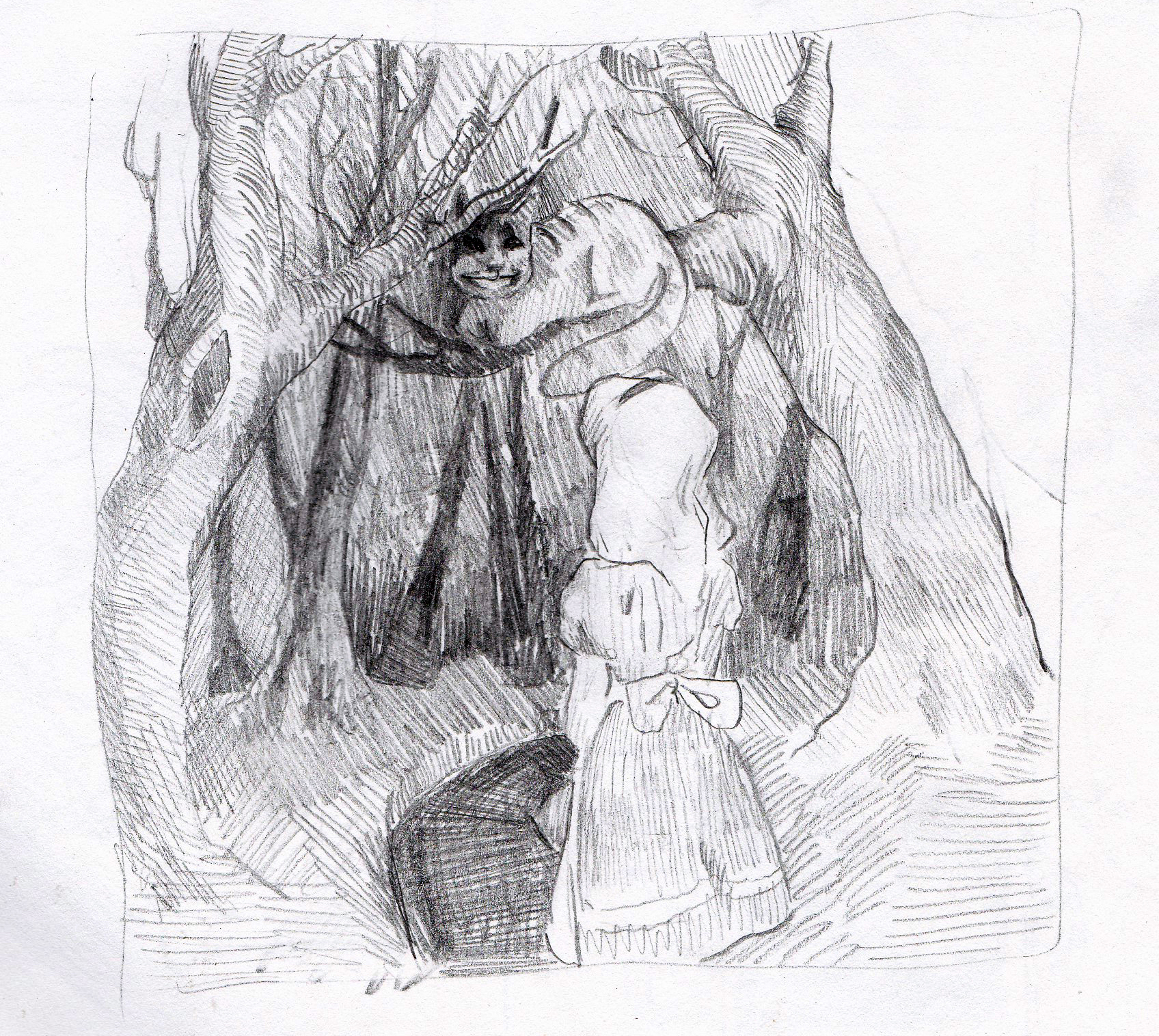 Alice ran a little way into the wood, and stopped under a large tree. “It can never get me here,” she thought’