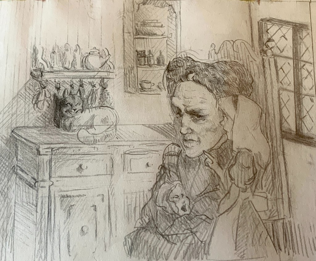 ‘It was getting so dark so suddenly that Alice thought there must be a thunderstorm coming on. “What a thick black cloud that is!” she said, “And how fast it comes! Why, I do believe it’s got wings!”